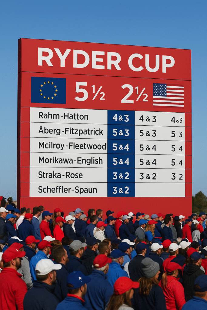 At Bethpage Black in Farmingdale, New York, Team Europe seized control of the 45th Ryder Cup, taking a 5.5 to 2.5 lead over Team USA. Europe’s biggest names — Rory McIlroy, Tommy Fleetwood, and Jon Rahm — dominated their matches, while